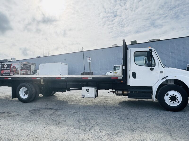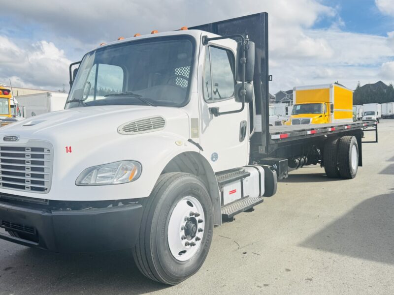 2019 Freightliner M2 106 with a 26′ flatdeck, featuring low kilometres and ready to work. This well-maintained medium-duty truck offers strong performance, reliability, and versatility—ideal for hauling, construction, or delivery applications. Comfortable cab, proven durability, and a spacious flatdeck make it a smart addition to any fleet or business looking for dependable power with low usage. Turn-key and job-site ready.
