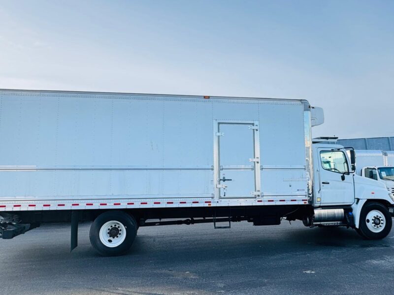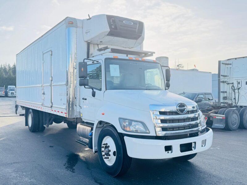 2019 Hino 338 is a dependable medium-duty truck featuring a 26′ refrigerated box and air brakes, ideal for transporting perishable goods. It comes with a 260 hp diesel engine and automatic transmission, delivering strong performance and reliable stopping power for urban and regional routes.